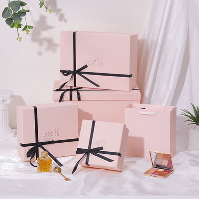 Celebrate life's special moments with our Pink Ribbon Gift Box Collection, featuring a sophisticated minimalist design that blends functionality with elegant aesthetics. These premium gift boxes showcase a soft pink hue complemented by sleek black ribbon closures, creating a timeless presentation perfect for cosmetics, jewelry, and special occasion gifts. The heaven and earth lid construction ensures perfect alignment and secure protection for your most cherished items, while the subtle branding adds a touch of personalized charm. Crafted from high-quality kraft paper, these boxes are available in three coordinated sizes that stack neatly for versatile storage solutions. The clean lines and minimalist approach make these boxes ideal for Valentine's Day surprises, birthday presents, or elegant brand packaging, offering both practical organization and beautiful presentation in one complete solution.